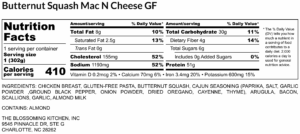 Butternut Squash Mac N Cheese GF – Nutrition Label Post navigationPrevious post: Butternut Squash Mac N Cheese (contains almond) GF FF Leave a Reply Cancel replyYour email address will not be published. Required fields are marked *Comment * Name * Email * Website Δ
