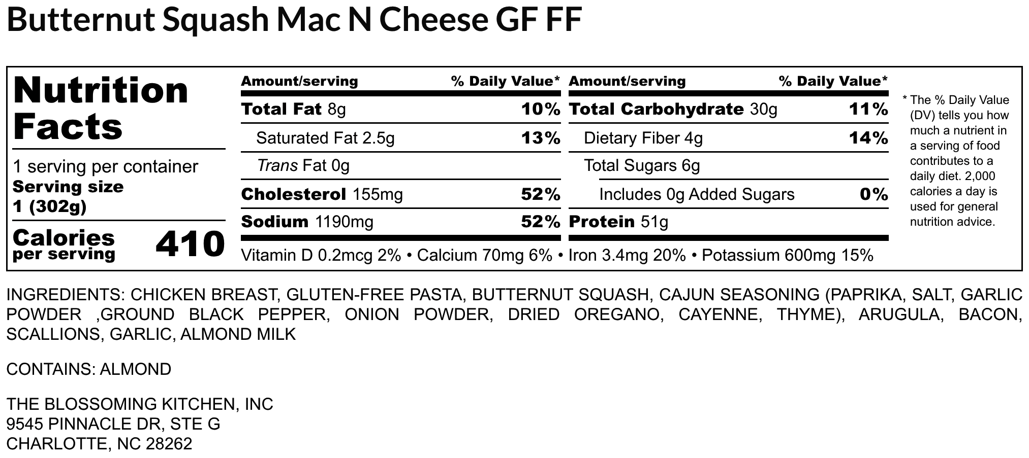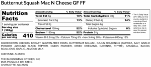 Butternut Squash Mac N Cheese GF FF – Nutrition Label
