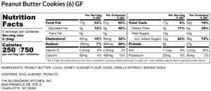 Peanut Butter Cookies (6) GF – Nutrition Label (2) Post navigationPrevious post: Peanut Butter Cookies (6) (contains egg, almond, peanuts) GF FF Leave a Reply Cancel replyYour email address will not be published. Required fields are marked *Comment * Name * Email * Website Δ