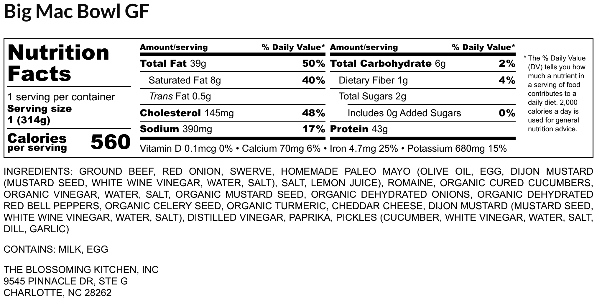 Big Mac Bowl GF – Nutrition Label Post navigationPrevious post: Big Mac Bowl (contains milk, egg) GF Leave a Reply Cancel replyYour email address will not be published. Required fields are marked *Comment * Name * Email * Website Δ