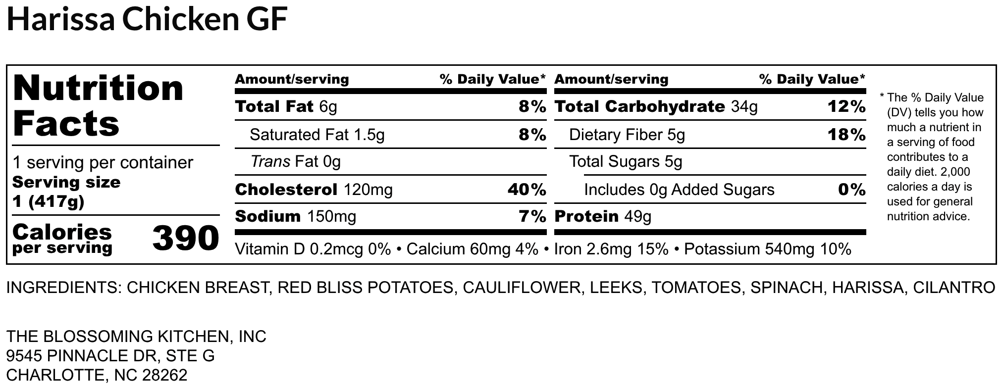 Harissa Chicken GF – Nutrition Label Post navigationPrevious post: Harissa Chicken GF FF Leave a Reply Cancel replyYour email address will not be published. Required fields are marked *Comment * Name * Email * Website Δ