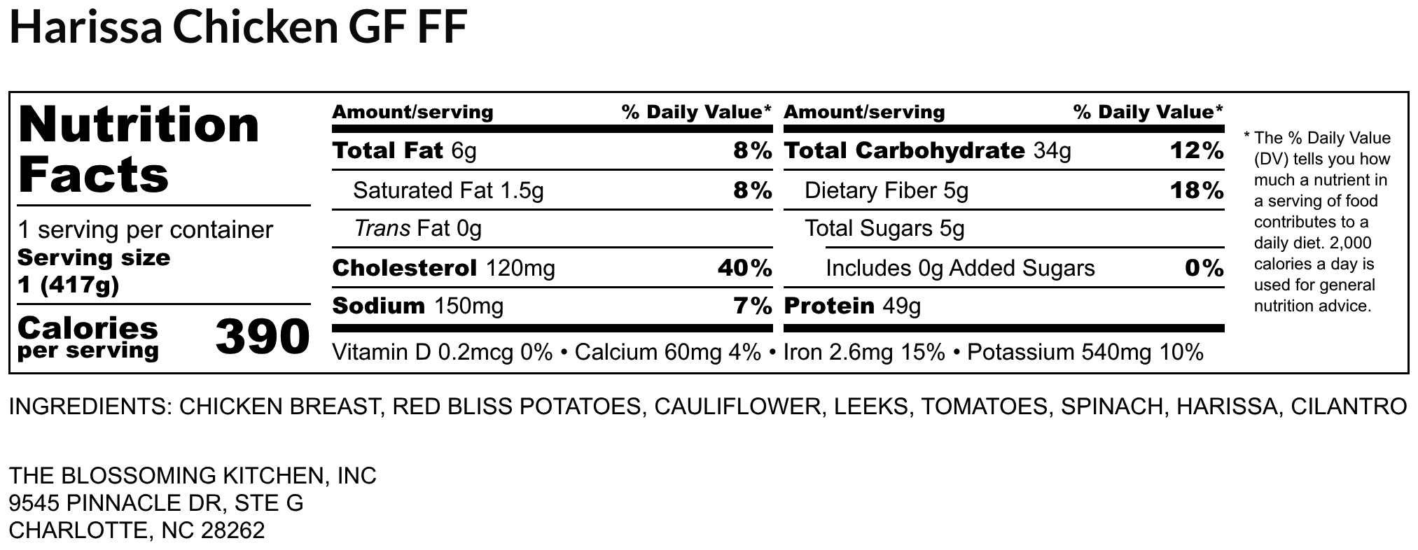 Harissa Chicken GF FF – Nutrition Label Post navigationPrevious post: Harissa Chicken GF FF Leave a Reply Cancel replyYour email address will not be published. Required fields are marked *Comment * Name * Email * Website Δ