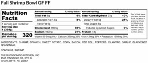 Fall Shrimp Bowl GF FF – Nutrition Label Post navigationPrevious post: Fall Shrimp Bowl (contains shrimp) GF FF Leave a Reply Cancel replyYour email address will not be published. Required fields are marked *Comment * Name * Email * Website Δ