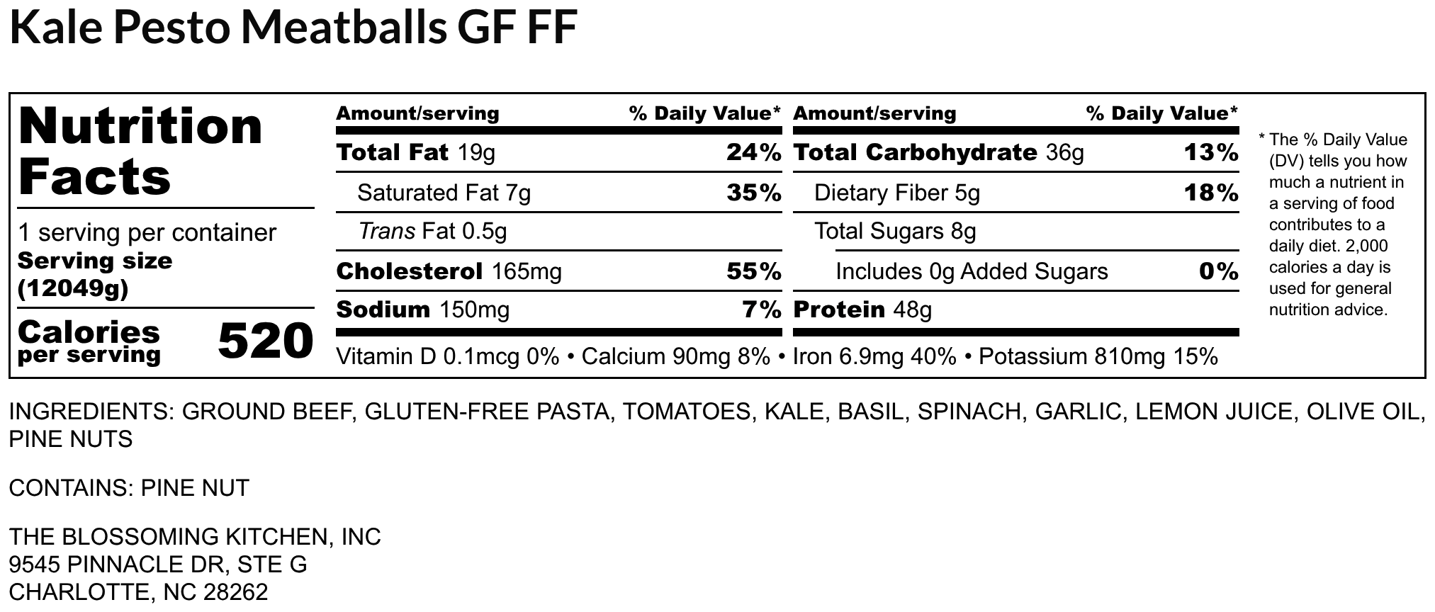 Kale Pesto Meatballs GF FF – Nutrition Label Post navigationPrevious post: Kale Pesto Meatballs (contains pine nut) GF FF Leave a Reply Cancel replyYour email address will not be published. Required fields are marked *Comment * Name * Email * Website Δ