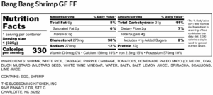 Bang Bang Shrimp GF FF – Nutrition Label Post navigationPrevious post: Bang Bang Shrimp (contains egg, shrimp) GF FF Leave a Reply Cancel replyYour email address will not be published. Required fields are marked *Comment * Name * Email * Website Δ