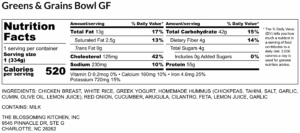 Greens & Grains Bowl GF – Nutrition Label (1) Post navigationPrevious post: Grains & Green Bowl (contains milk) GF Leave a Reply Cancel replyYour email address will not be published. Required fields are marked *Comment * Name * Email * Website Δ