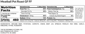 Meatball Pot Roast GF FF – Nutrition Label