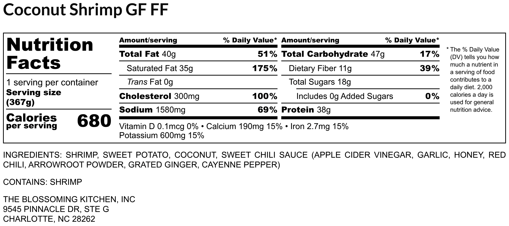 Coconut Shrimp GF FF – Nutrition Label Post navigationPrevious post: Coconut Shrimp (contains shrimp) GF FF Leave a Reply Cancel replyYour email address will not be published. Required fields are marked *Comment * Name * Email * Website Δ