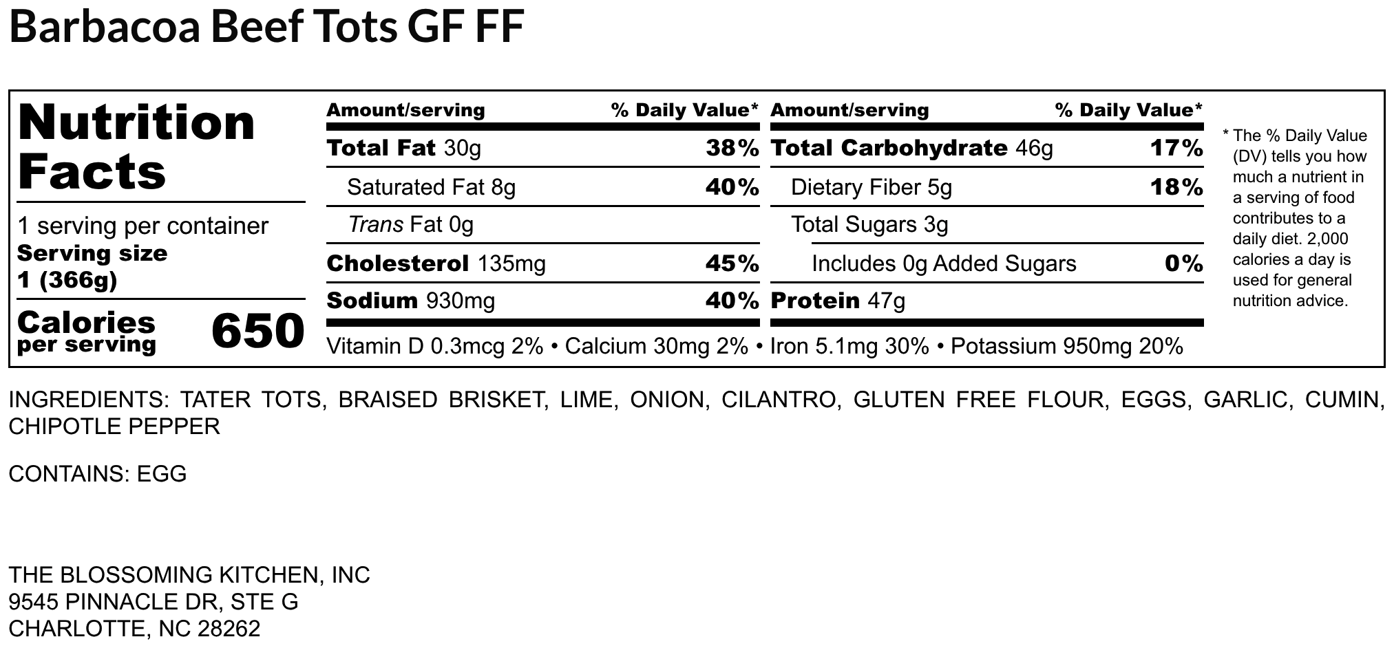 Barbacoa Beef Tots GF FF – Nutrition Label Post navigationPrevious post: Barbacoa Beef Tots (contains egg) GF FF Leave a Reply Cancel replyYour email address will not be published. Required fields are marked *Comment * Name * Email * Website Δ