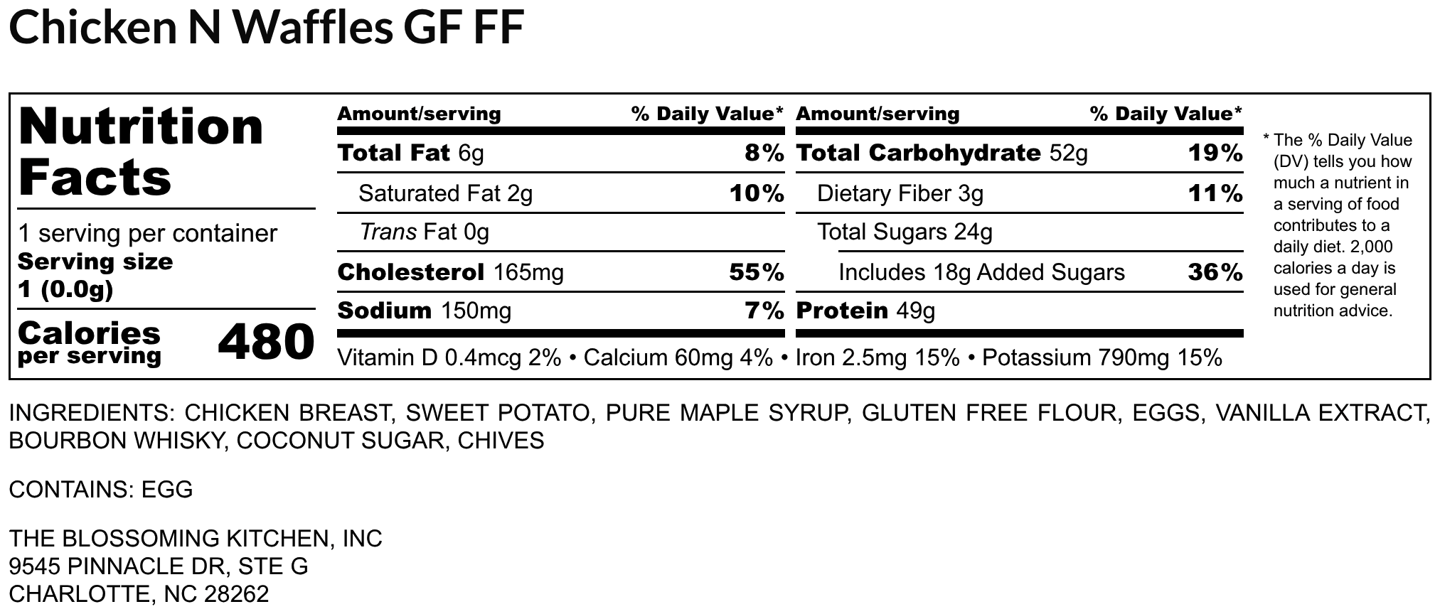Chicken N Waffles GF FF – Nutrition Label Post navigationPrevious post: Chicken N Waffles (contains egg) GF FF Leave a Reply Cancel replyYour email address will not be published. Required fields are marked *Comment * Name * Email * Website Δ