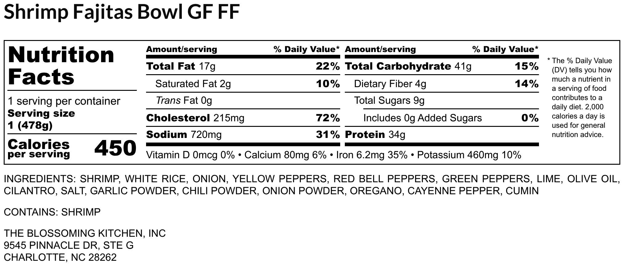 Shrimp Fajitas Bowl GF FF – Nutrition Label (2) Post navigationPrevious post: Shrimp Fajitas Bowl (contains shrimp) GF FF Leave a Reply Cancel replyYour email address will not be published. Required fields are marked *Comment * Name * Email * Website Δ