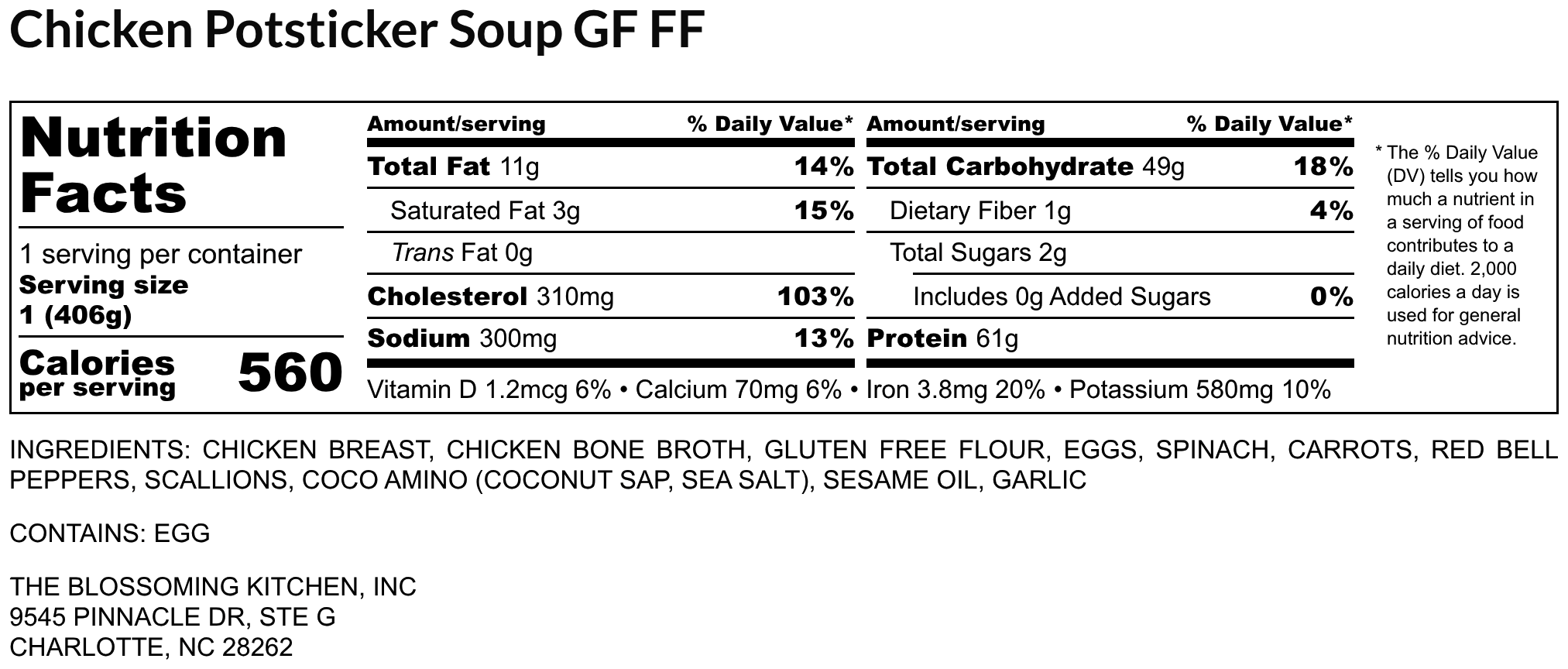 Chicken Potsticker Soup GF FF – Nutrition Label Post navigationPrevious post: Chicken Potsticker Soup (contains egg) GF FF Leave a Reply Cancel replyYour email address will not be published. Required fields are marked *Comment * Name * Email * Website Δ