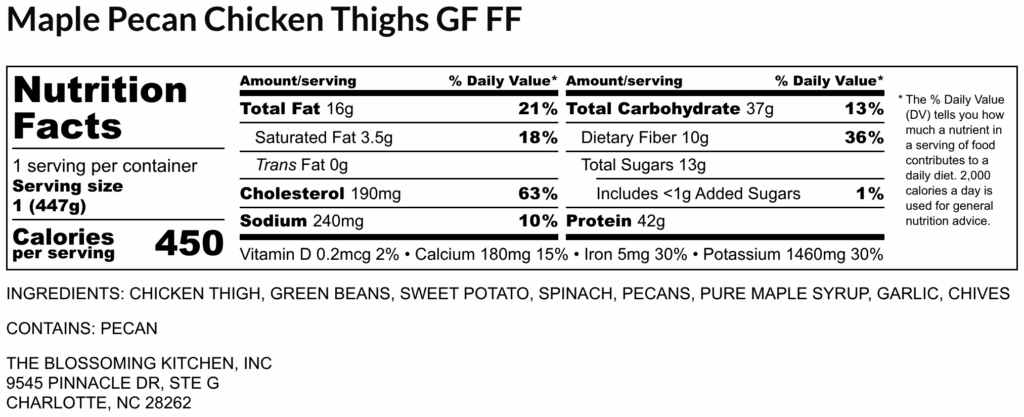 Maple Pecan Chicken Thighs (contains pecan) GF FF