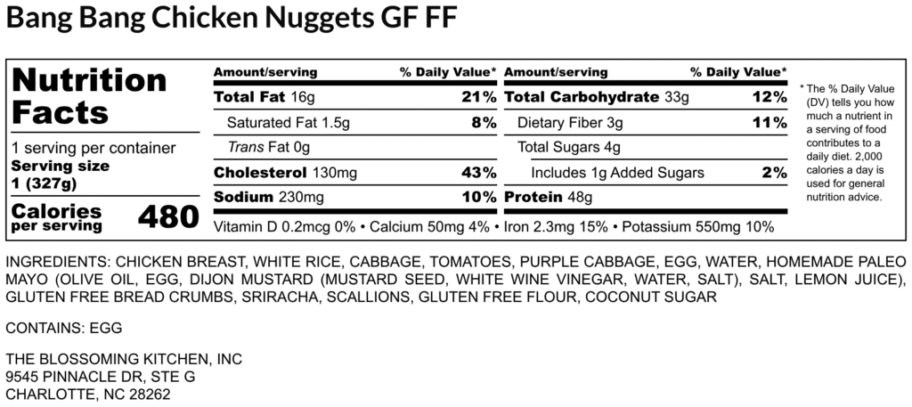 Bang Bang Chicken Nugs (contains egg) GF FF