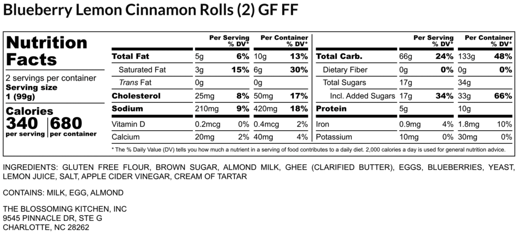 Blueberry Lemon Cinnamon Rolls (2) (contains milk, egg, almond) GF FF