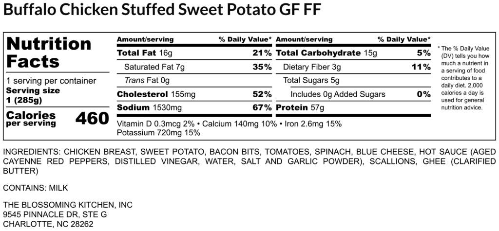 Buffalo Chicken Stuffed Sweet Potato (contains milk) GF FF
