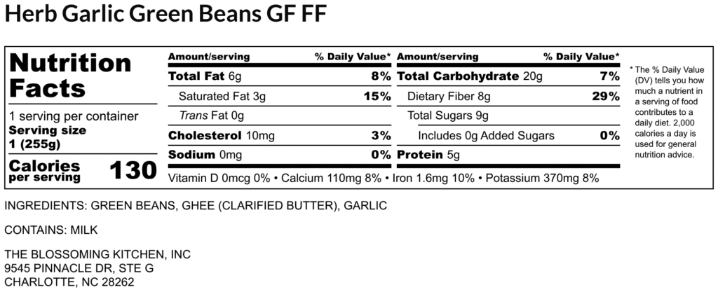 Herb Garlic Green Beans (contains milk) GF FF