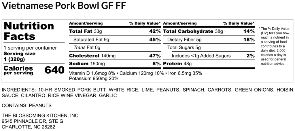 Vietnamese Pork Bowl (contains peanuts) GF FF