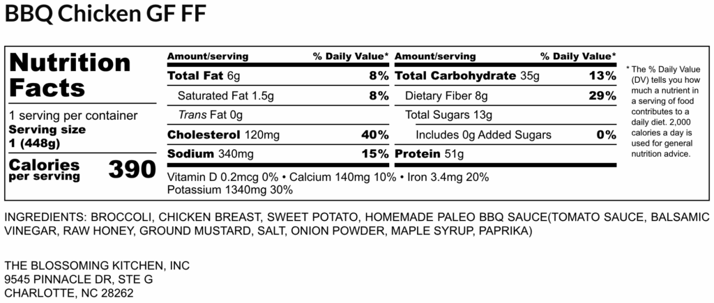 grilled chicken breast – roasted sweet potato – broccoli florets – house-made bbq sauce