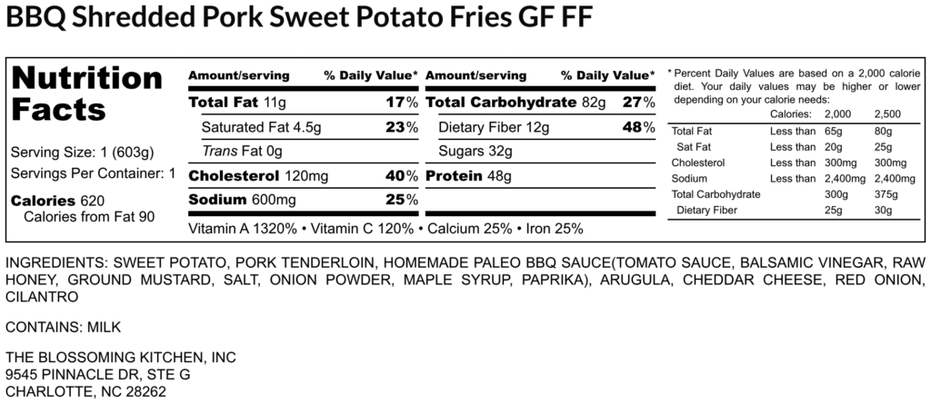BBQ Shredded Pork Sweet Potato Fries (contains milk) GF FF