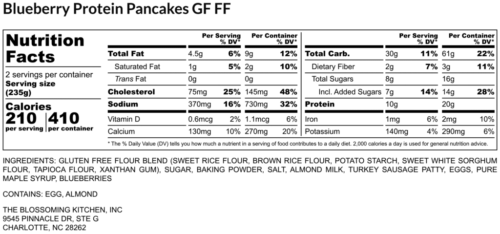 Blueberry Protein Pancakes (contains egg, almond) GF FF