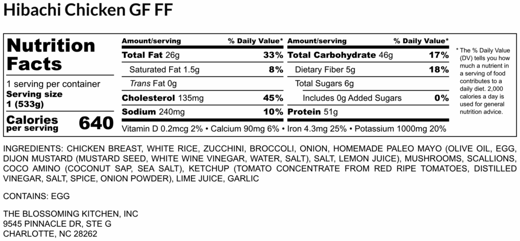 chicken breast – broccoli – zucchini – mushrooms – onion – white rice – yum yum sauce (on the side) – scallions