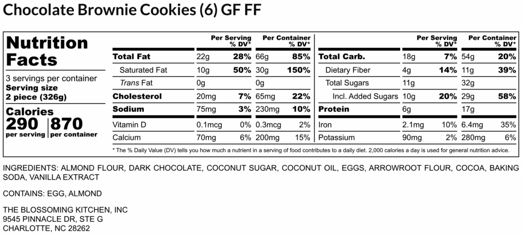 Chocolate Brownie Cookies (6) (contains egg, almond) GF FF