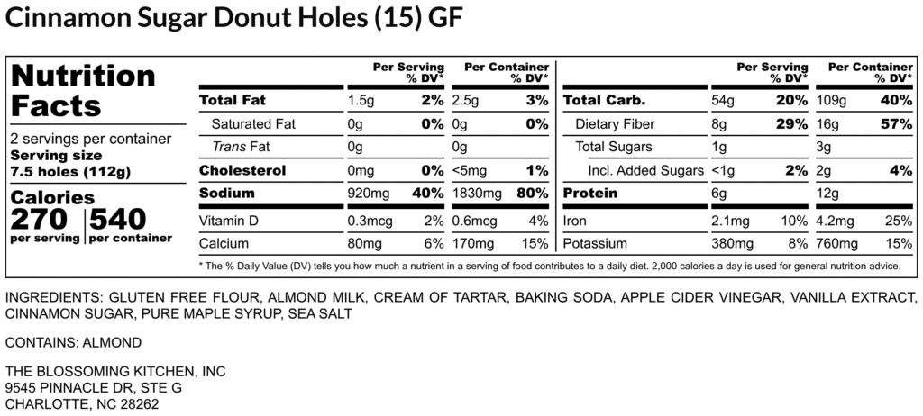 Cinnamon Sugar Donut Holes (15) (contains almond) GF