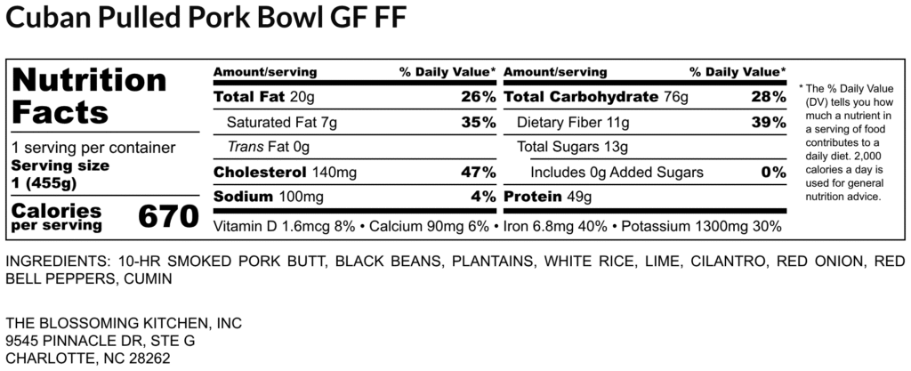12 hour smoked pork butt – cilantro lime white rice – black beans – red onion – roasted red pepper – cilantro – cumin – roasted plantains – lime wedge