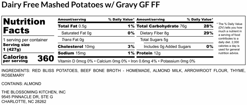 Dairy Free Mashed Potatoes with Gravy (contains almond) GF FF
