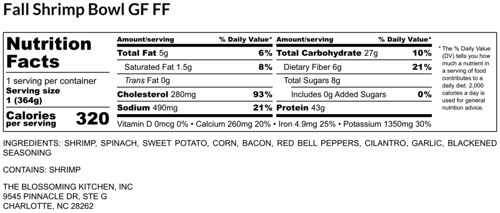 Fall Shrimp Bowl (contains shrimp) GF FF