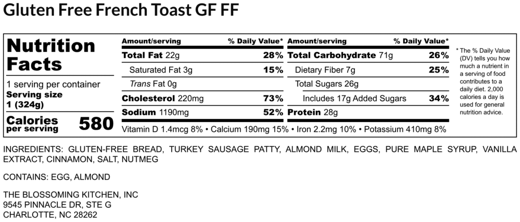 gluten-free bread – turkey sausage patty – almond milk – eggs – pure maple syrup – vanilla extract – cinnamon – salt – nutmeg