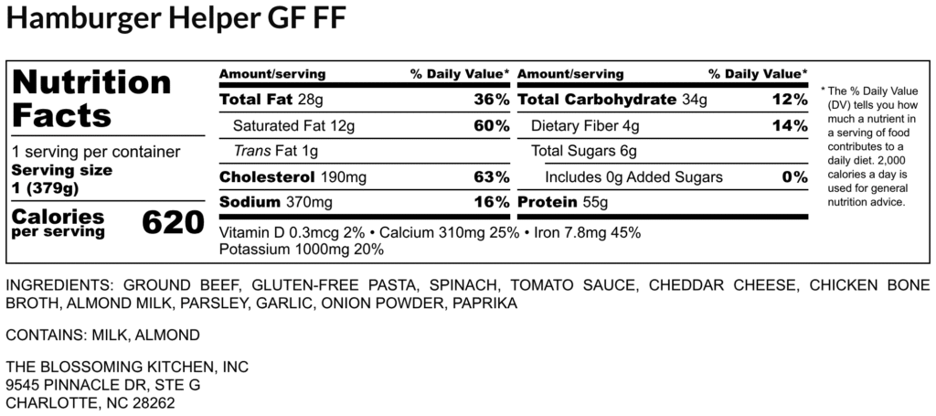 Hamburger Helper (contains milk, almond) GF FF
