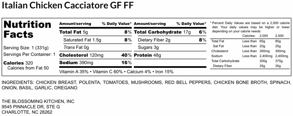 Italian Chicken Cacciatore GF FF