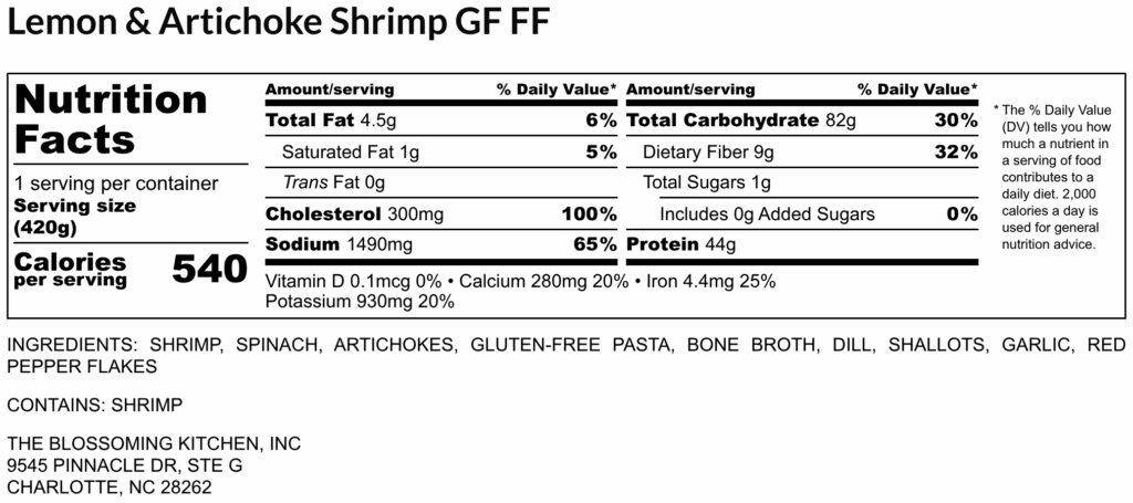 Lemon & Artichoke Shrimp (contains shrimp) GF FF