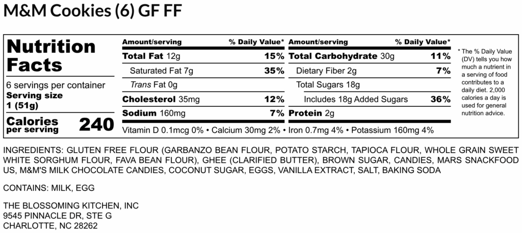 M&M Cookies (6) (contains milk, egg) GF FF