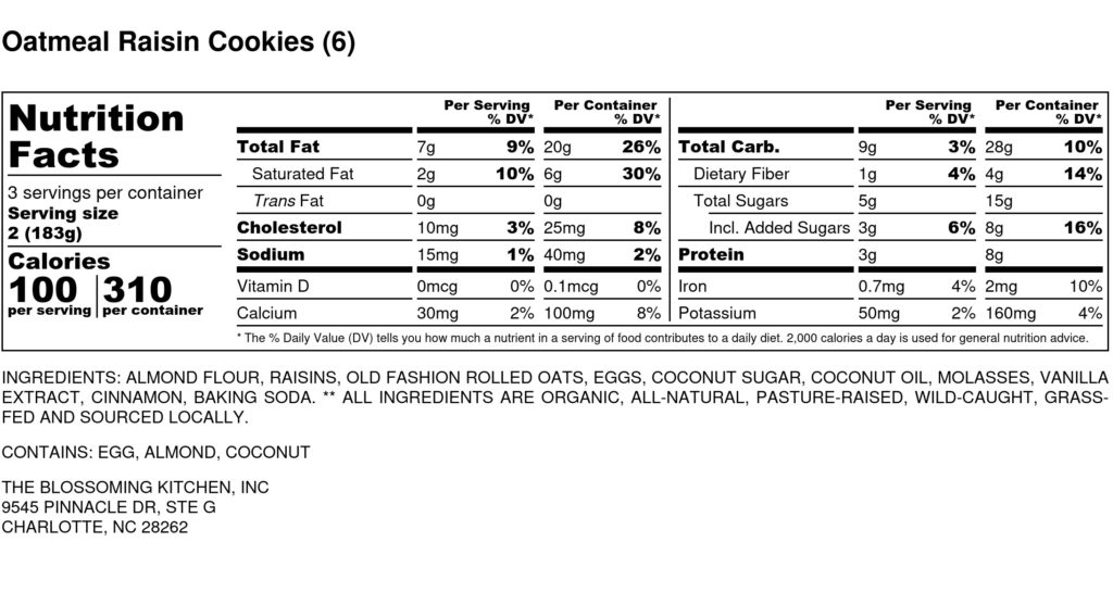 almond flour – raisins – old fashioned rolled oats – eggs – coconut sugar – coconut oil – molasses – vanilla extract – cinnamon – baking soda