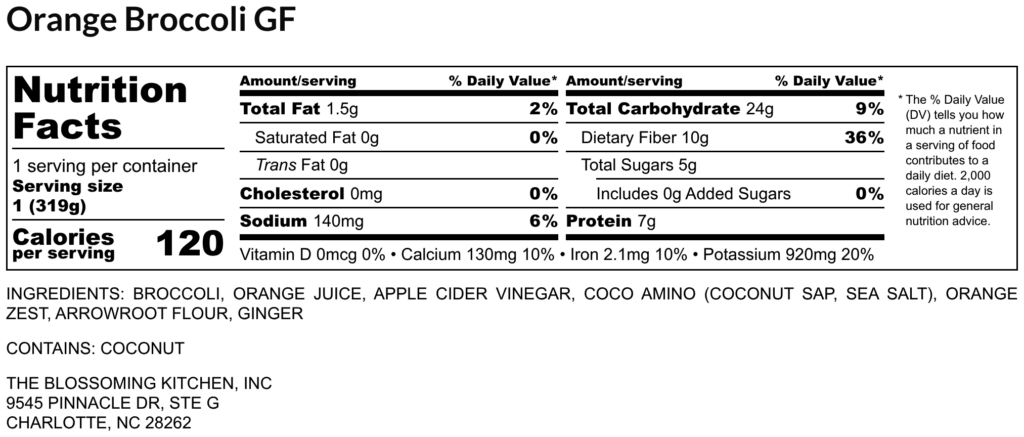 broccoli – orange juice – apple cider vinegar – coco amino – orange zest – arrowroot flour – ginger