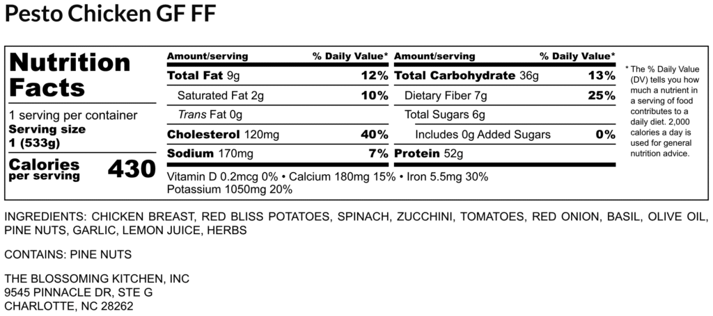 Pesto Chicken (contains pine nuts) GF FF