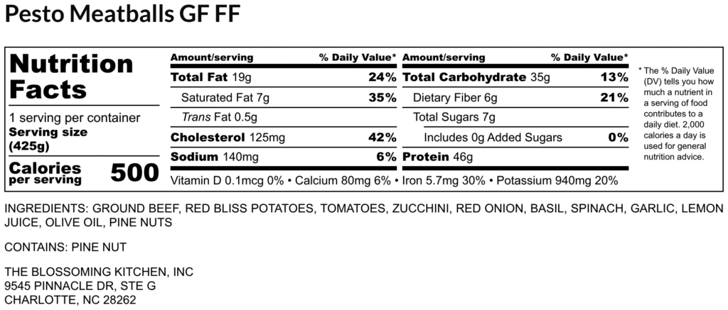 Pesto Meatballs (contains pine nuts) GF FF