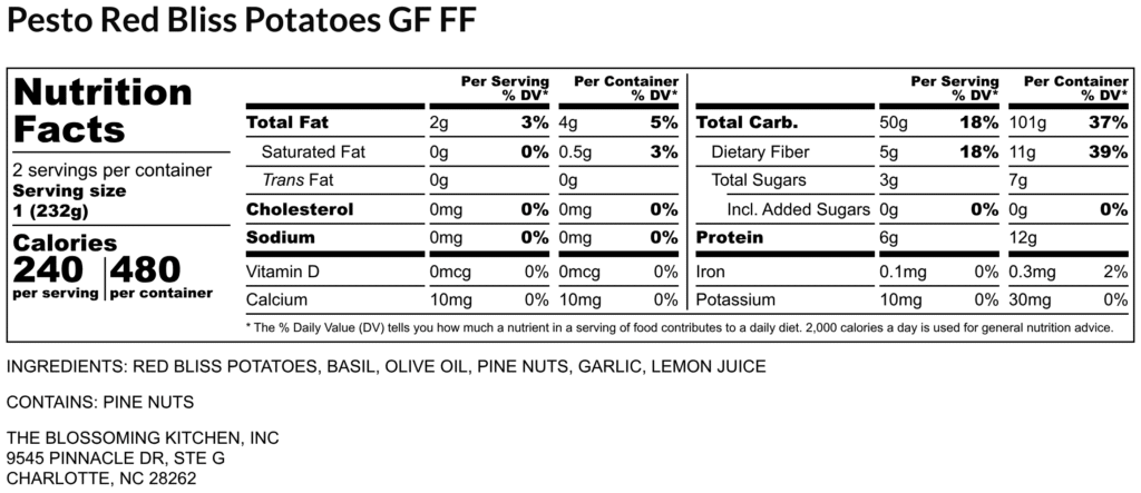 red bliss potatoes – basil – olive oil – pine nuts – garlic – lemon juice