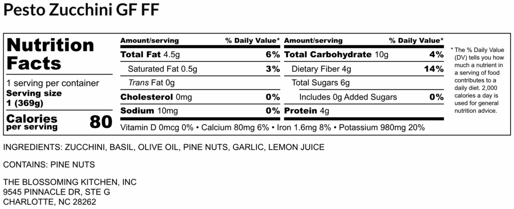 Pesto Zucchini (contains pine-nuts) GF FF