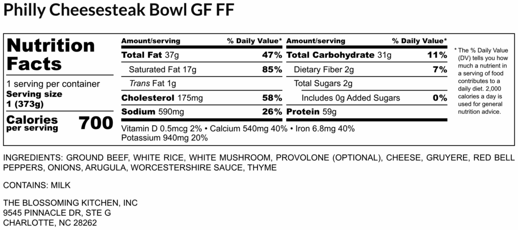 Philly Cheesesteak Bowl (contains milk) GF FF