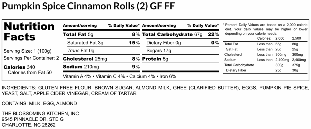 Pumpkin Spice Cinnamon Rolls (2) (contains milk, egg, almond) GF FF