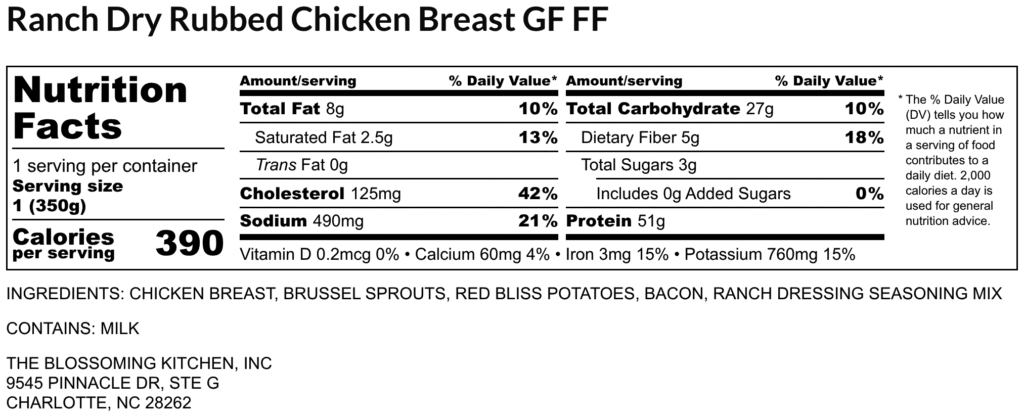 Ranch Dry Rubbed Chicken Breast (contains milk) GF FF