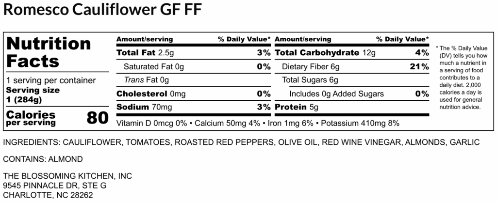 cauliflower – tomatoes – roasted red peppers – olive oil 0 red wine vinegar – almonds – garlic