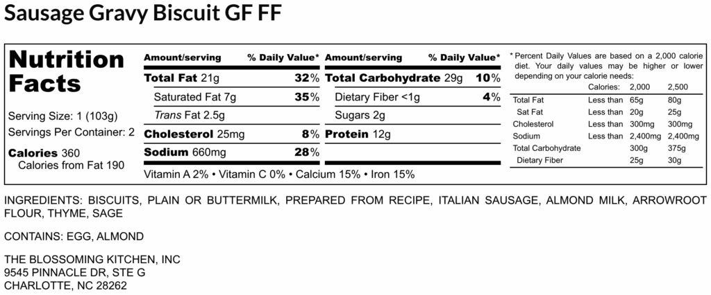 Sausage Gravy Biscuit (contains egg, almond) GF FF