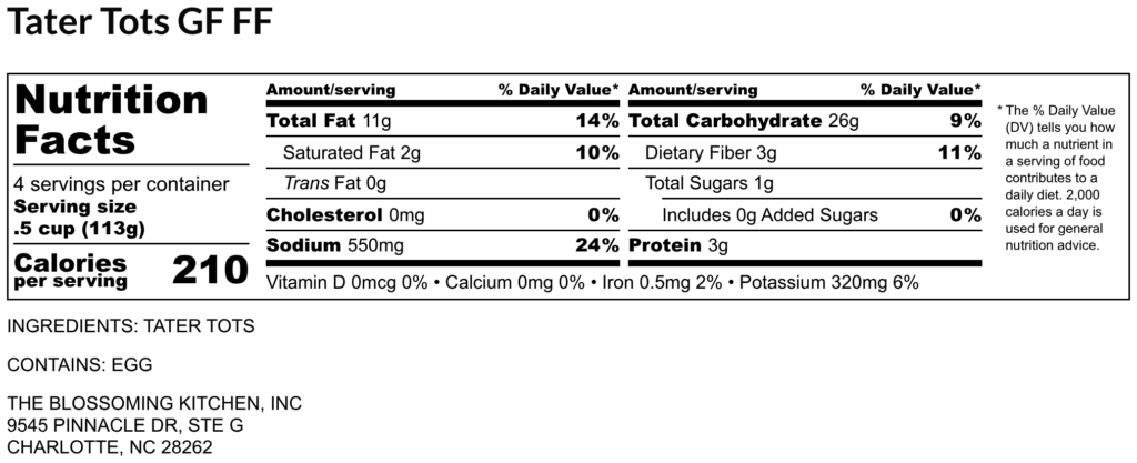 Tater Tots (contains egg) GF FF
