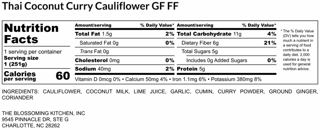 Thai Curry Cauliflower GF FF