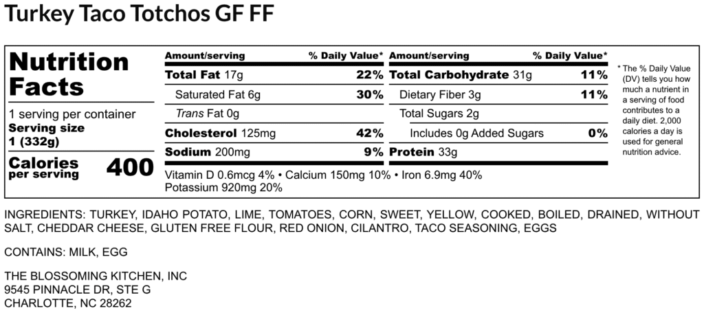 Turkey Taco Totchos (contains milk, egg) GF FF